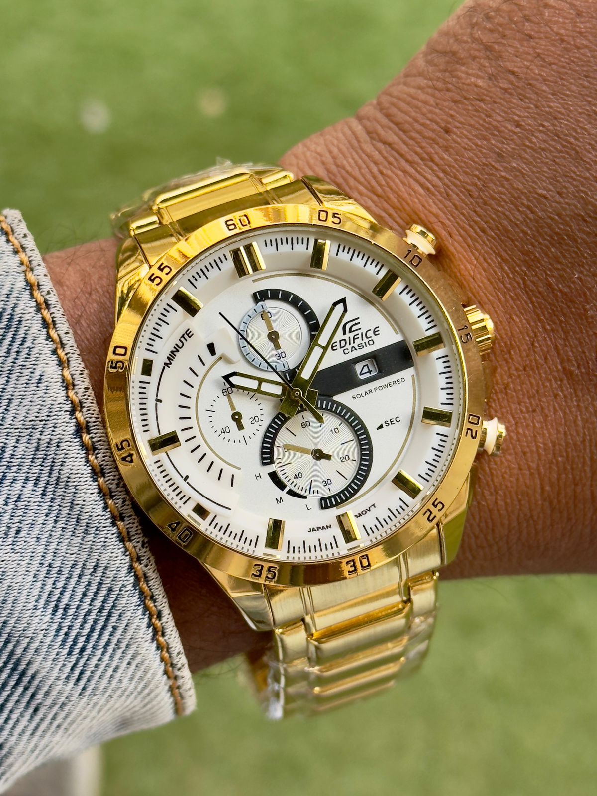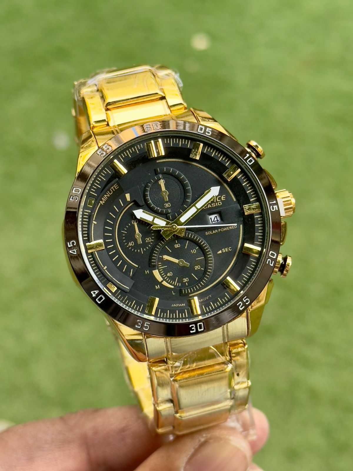 “Bold, brilliant, and beautifully powerful — this gold Edifice looks like pure success on your wrist.” ✨ CASIO EDIFICE Men Features:- * Quartz movement * Chronograph design * Date window working * Luminous hands * Ss back & Double pressing lock